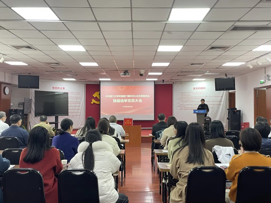 【文章導(dǎo)讀】2月27日,廈門大學(xué)附屬廈門眼科中心召開全體黨員大會,順利完成了黨總支換屆選舉工作。會議由黨委副書記、業(yè)務(wù)副院長、斜弱視與小兒眼科學(xué)科帶頭人潘美華同志主持,廈門眼科中