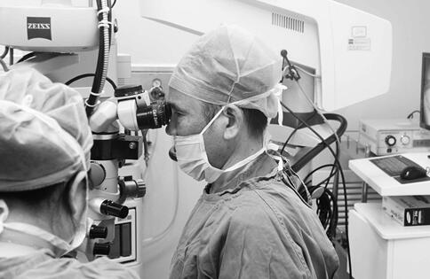 來到廈門眼科中心后,眼表及角膜病??频膶W(xué)科醫(yī)生吳護(hù)平教授為老劉檢查,發(fā)現(xiàn)他角膜中央有一大小約3X3mm的小孔,“這是角膜穿孔,要保住眼球就得角膜移植。”