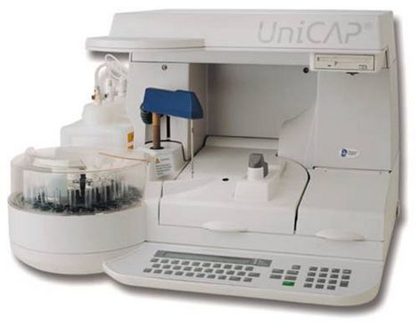 UniCAP是一先進的實驗室系統(tǒng),包括體外檢測試劑和高度自動化的儀器。所有的操作步驟:加樣、加試劑及ImmunoCAP、孵育、清洗和計算,全部自動化。而且,嚴格控制測試條件,包括內(nèi)部儲存的標準曲線,確保實驗結(jié)果的真實可靠。從一簡單的血樣,UniCAP可快速而準確地得到檢測結(jié)果。