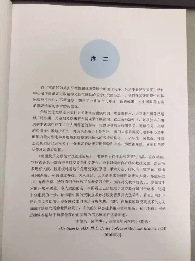 【文章導(dǎo)讀】由廈門眼科中心吳護(hù)平教授、林志榮博士后主編,中國(guó)干眼之父劉祖國(guó)教授主審的《角膜膠原交聯(lián)技術(shù)及臨床應(yīng)用》出刊啦,7月上旬將與大家正式見(jiàn)面啦! 《角膜膠原交聯(lián)技術(shù)及臨床