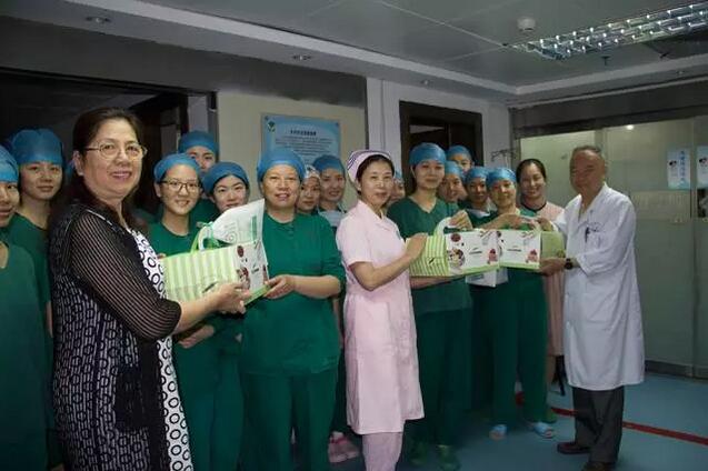 永遠(yuǎn)忙碌的白衣天使,今天依然穿梭于病房、門診、手術(shù)室、消毒室等需要她們的地方。吳國基院長、陳逸恬主題帶上蛋糕、水果,來到每個樓層為堅守崗位的護(hù)士送去慰問、關(guān)心。