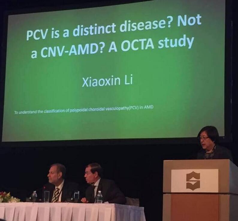 黎曉新在會(huì)上分享了關(guān)于脈絡(luò)膜息肉樣病變與老年黃斑變性為主題的內(nèi)容