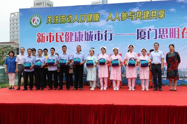我院手術(shù)室的謝海航(同事代領(lǐng))、白內(nèi)障科室的李蘇丹、眼底二區(qū)的韋雙英、視光部的鐘佳靜、護理部的雷薛瑩等5名護士被選為新市民代表上臺接受與會領(lǐng)導發(fā)送的知識手冊、健康支持工具包。她們來廈工作多年,在護理崗位上兢兢業(yè)業(yè),雖然因為職業(yè)的特殊性有時會加班、熬夜,甚至顧不上吃飯,但是還是會利用空閑時間里加強鍛煉、關(guān)注身心健康,并且把健康知識傳播給患者和周圍的人。