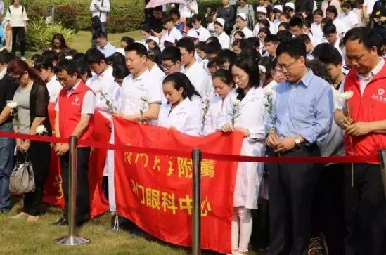 藍(lán)天下,清風(fēng)徐來(lái),菊香陣陣。4月4日上午,在廈門海滄文圃山紀(jì)念園里,廈門市衛(wèi)計(jì)委、民政局、廈門市紅十字會(huì)、廈門眼科中心的工作人員與廈大醫(yī)學(xué)院、廈門醫(yī)學(xué)院的學(xué)生,以及捐獻(xiàn)者家屬、捐獻(xiàn)志愿者代表等300余人集體緬懷廈門市遺體、器官、眼角膜捐獻(xiàn)者,感恩他們的無(wú)私贈(zèng)予,幫助生者能夠享受生命,擁有光明。