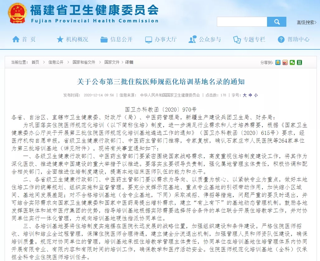 近日,根據(jù)國家衛(wèi)生健康委員會辦公廳、財政部辦公廳、國家中醫(yī)藥管理局辦公室聯(lián)合發(fā)布的《關(guān)于公布第三批住院醫(yī)師規(guī)范化培訓(xùn)基地名錄的通知》(國衛(wèi)辦科教函[2020]970號)文件,確認廈門大學(xué)附屬廈門眼科中心成為第三批國家級住院醫(yī)師規(guī)范化培訓(xùn)基地。