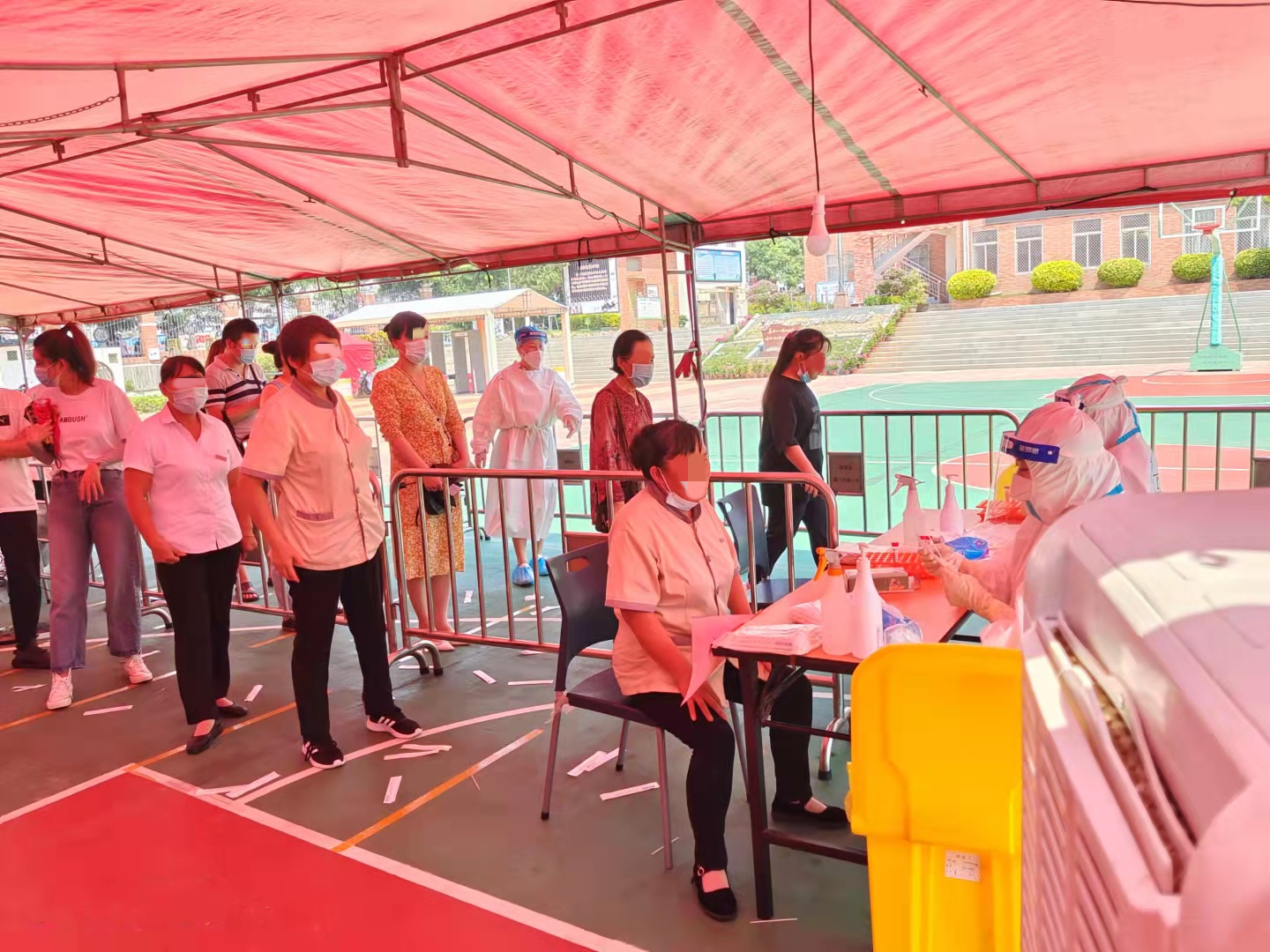 在采樣點(diǎn),醫(yī)護(hù)人員穿戴著又厚又熱的防護(hù)用品,正在有條不紊地進(jìn)行著緊張的采樣工作。“沖鋒在前,吃苦在前。”在高溫的炙烤下,在緊裹的防護(hù)服中,他們沒有絲毫退卻,任汗水濕透衣襟,任雙手雙腳泡得發(fā)白,耐心細(xì)致地為每一位市民做好采集工作。他們用意志錘煉初心,用行動書寫決心,全力以赴堅(jiān)決守護(hù)家園,為早日打贏疫情防控殲滅戰(zhàn)作出應(yīng)有的貢獻(xiàn)!