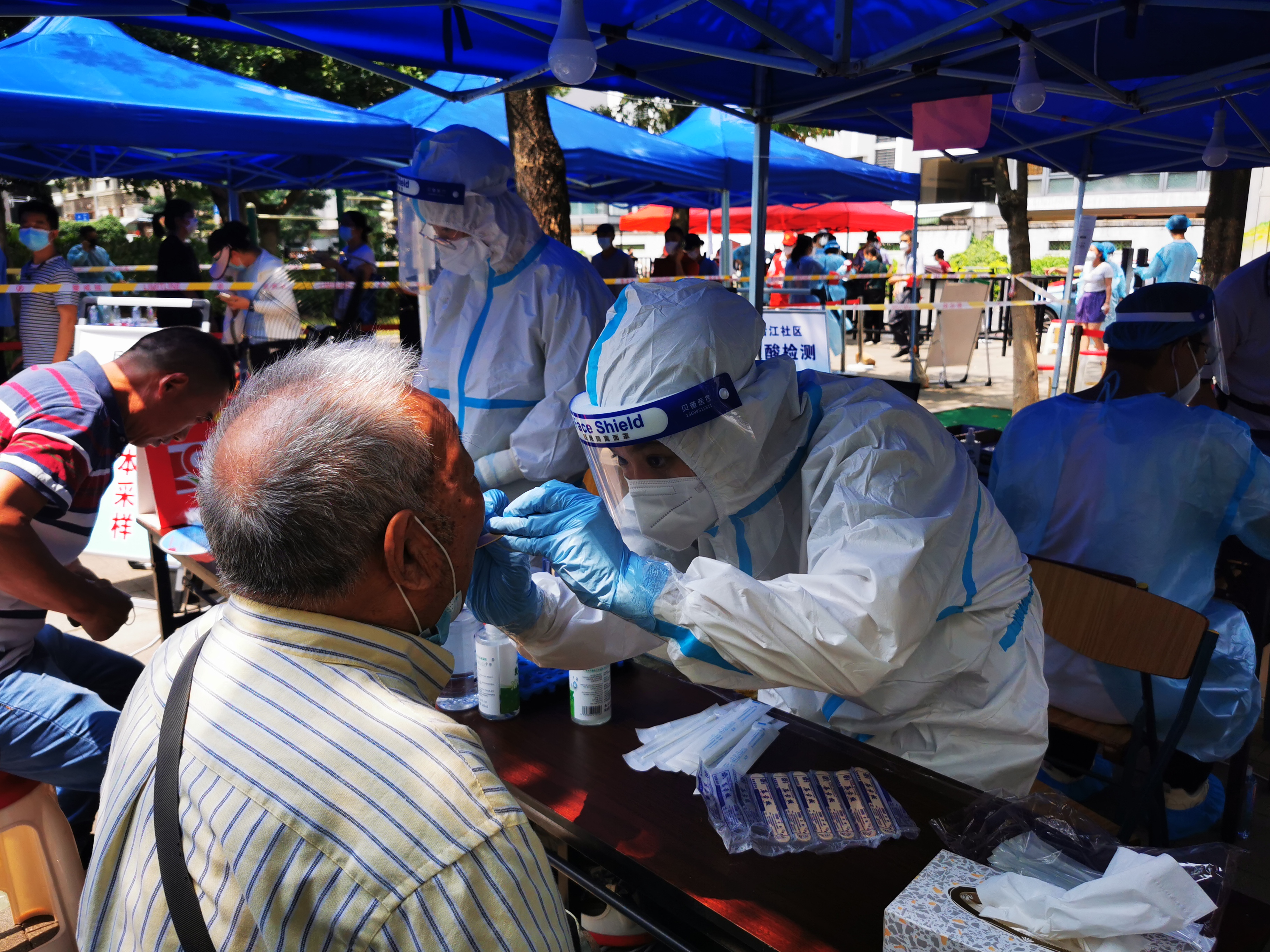 9月14日、15日,廈門眼科中心組織醫(yī)護(hù)人員,分批前往廈門何厝社區(qū)、萬壽陽臺山、祥濱公園、梅園公園等地點(diǎn)進(jìn)行核酸采樣。