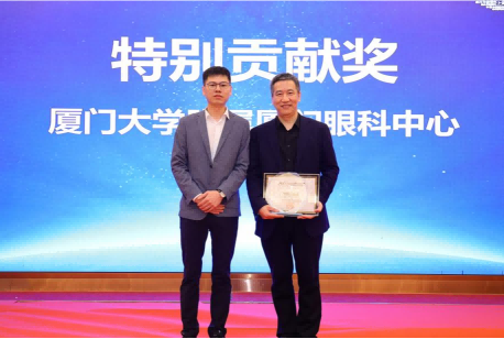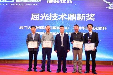 ▲ 燕振國教授為廈門眼科中心頒發(fā)“屈光技術(shù)鼎新獎”