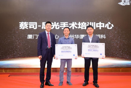 ▲蔡司醫(yī)療屈光事業(yè)部負(fù)責(zé)人李寧先生為廈門眼科中心授牌,共建蔡司屈光手術(shù)培訓(xùn)中心。