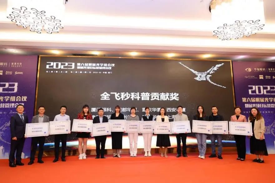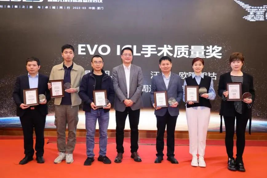 隨后,2022年度眼屈光學(xué)科各類優(yōu)秀獎項進(jìn)行了同步表彰,廈門眼科中心獲得多項殊榮,其中包括“2022年屈光項目特別貢獻(xiàn)獎”、“屈光技術(shù)鼎新獎”、“蔡司屈光手術(shù)培訓(xùn)中心”、“EVO ICL培訓(xùn)中心”、“個性化微飛秒全球認(rèn)證屈光中心”、“SMILE手術(shù)精益獎”、“全飛秒科普貢獻(xiàn)獎”等授牌,屈光手術(shù)中心多位醫(yī)生被授予“EVO ICL手術(shù)質(zhì)量獎”、“EVO ICL手術(shù)質(zhì)量卓越獎” 。