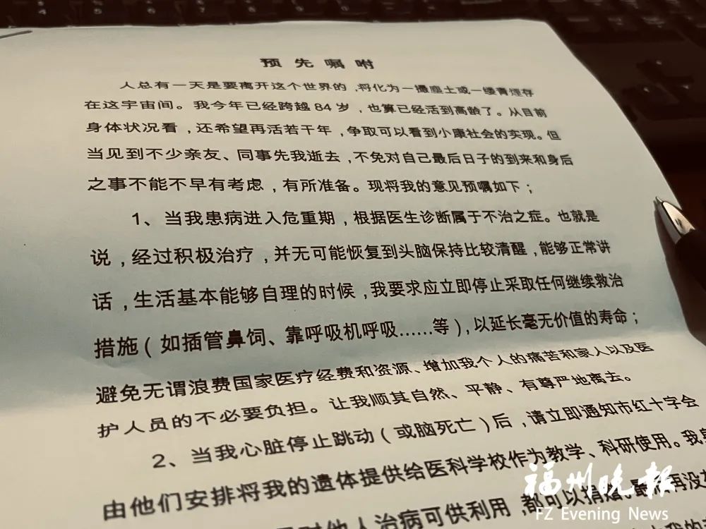預(yù)囑里寫道:“人總有一天是要離開這個(gè)世界的,將化為一撮塵土或一縷青煙存在這宇宙間。我今年已經(jīng)跨越84歲,也算已經(jīng)活到高齡了……但當(dāng)見到不少親友、同事先我逝去,不免對(duì)自己離去日子的到來和身后之事不能不早有考慮,有所準(zhǔn)備。”